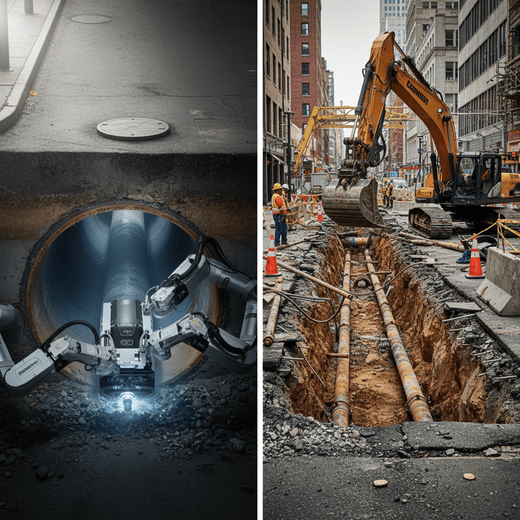 Si le fraisage robotisé canalisation présente de nombreux avantages, il convient de comprendre dans quelles situations cette technologie s’avère particulièrement pertinente et quand le terrassement peut encore se justifier.