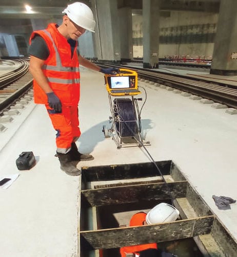 Inspection vidéo : La caméra, introduite dans la canalisation, explore et retransmet des images HD, tandis que le technicien note en simultané les anomalies repérées.